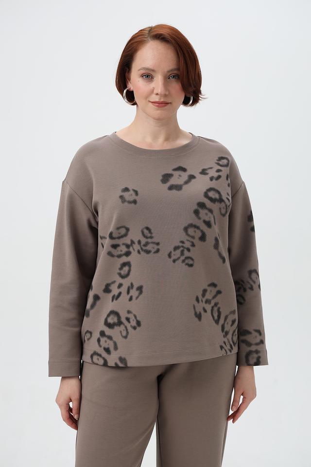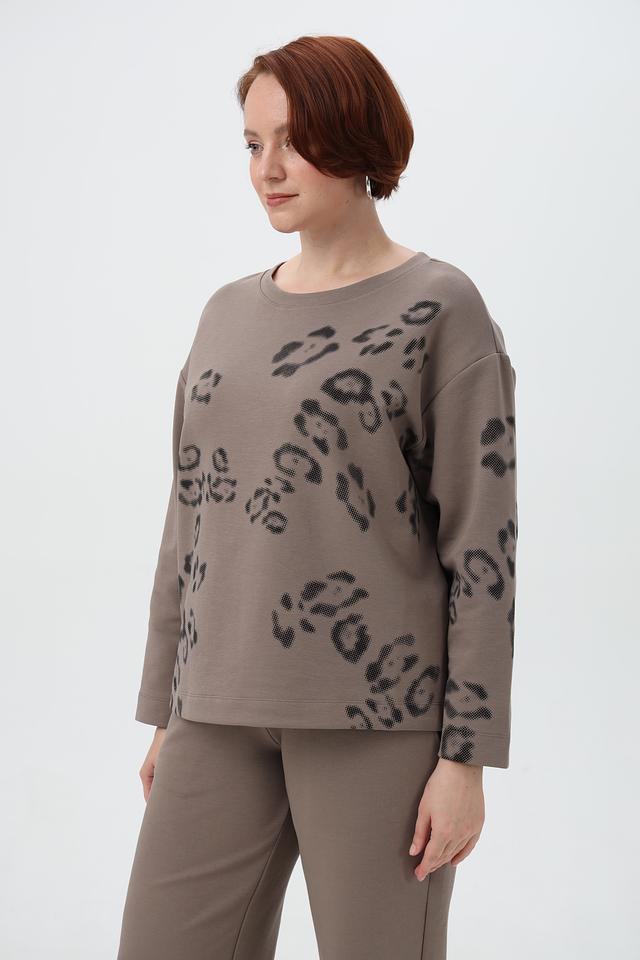 Представляем вашему вниманию уютный и стильный пуловер от бренда Margittes. Изделие выполнено в приятном коричневом цвете и украшено оригинальным принтом, выполненным в виде леопардовых пятен.