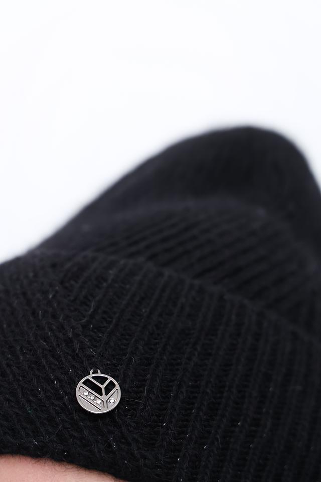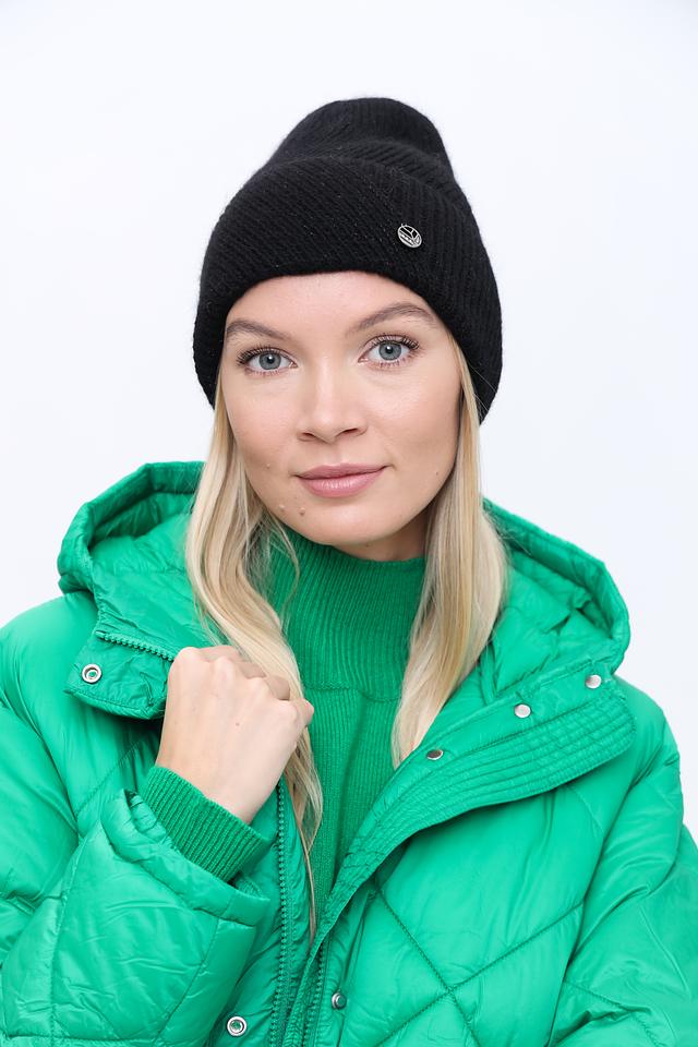Чёрная шапка Marhatter – это стильный и практичный аксессуар для холодного времени года. Изготовлена из высококачественного сочетания полиамида, вискозы, ангоры и люрекса, обеспечивающего тепло и комфорт. Декорирована металлическим логотипом бренда. Состав: полиамид 47%, вискоза 28%, ангора 20%, люрекс 5%