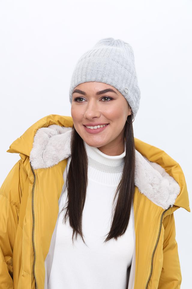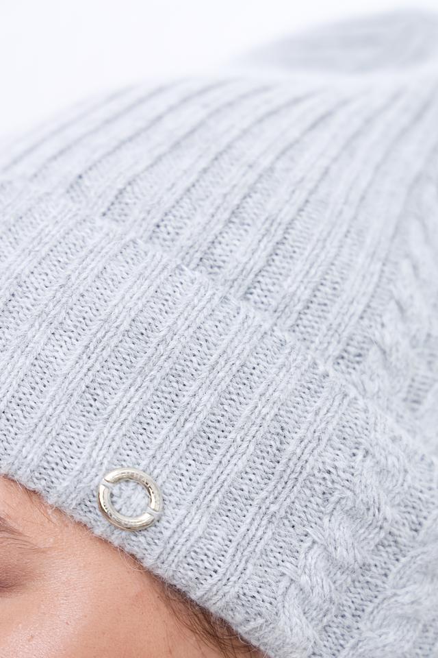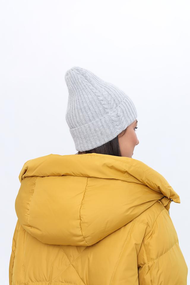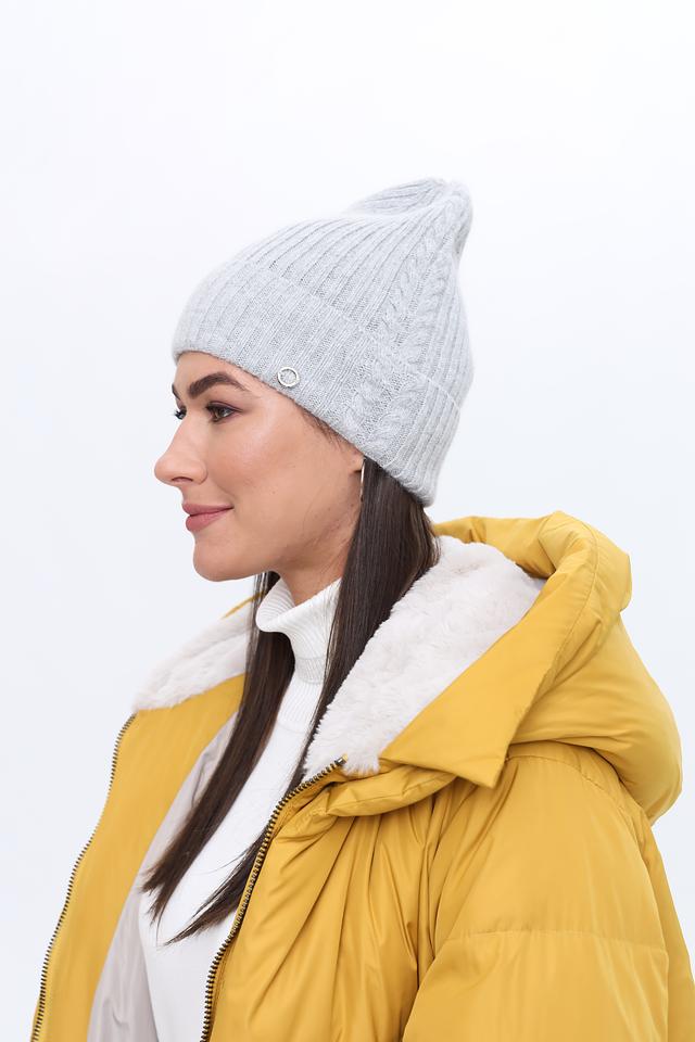 Шапка имеет классическую форму и нейтральный серый цвет, который легко сочетается с любой одеждой. Фактурный вязаный узор добавляет шапке изысканности и стиля. Небольшая декоративная подвеска придает шапке индивидуальность.