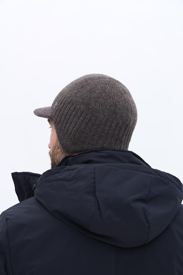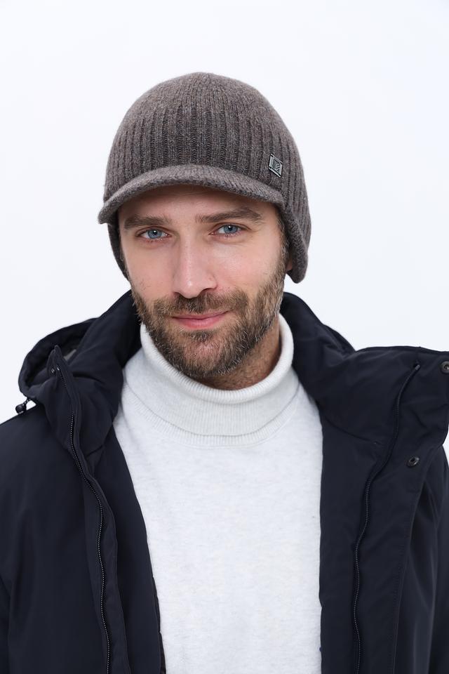 Шапка имеет удобный крой, плотно прилегающий к голове, и небольшой козырек, который добавляет образу стильный акцент. Вязаная текстура придает шапке уютный вид.