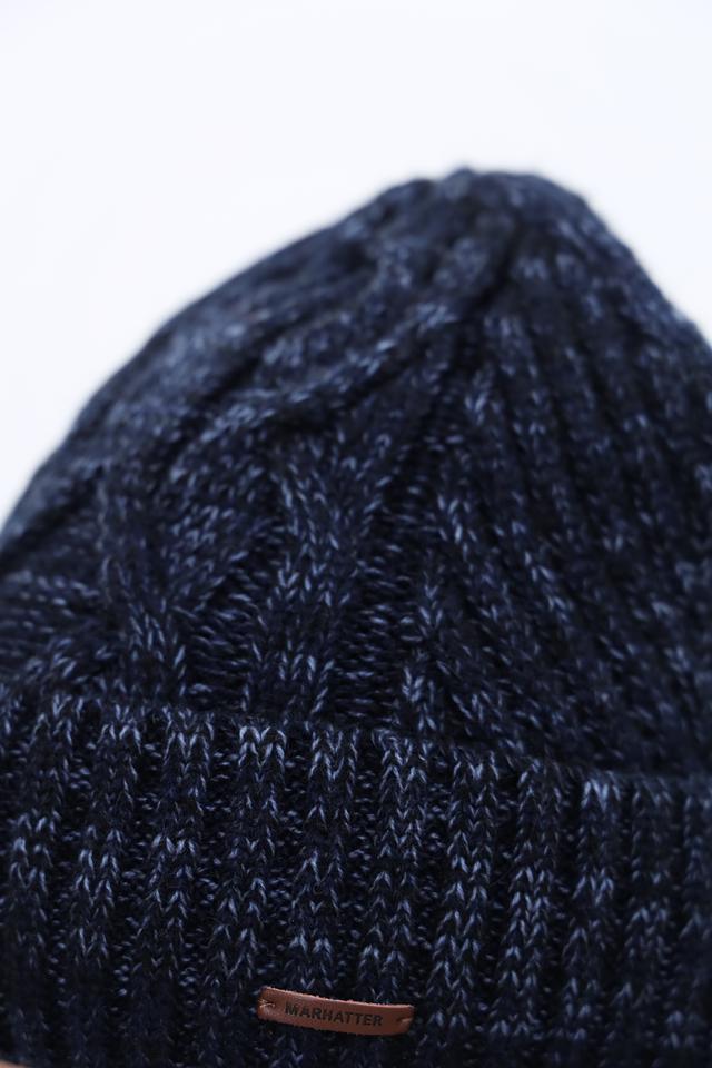 Шапка имеет классический дизайн и плотно прилегает к голове, защищая от ветра и холода. Тёмно-синий цвет делает её универсальной и подходящей к различным стилям одежды. Небольшая кожаная бирка с логотипом Marhatter добавляет шапке изысканности.