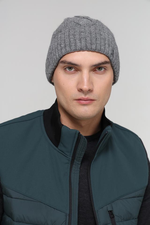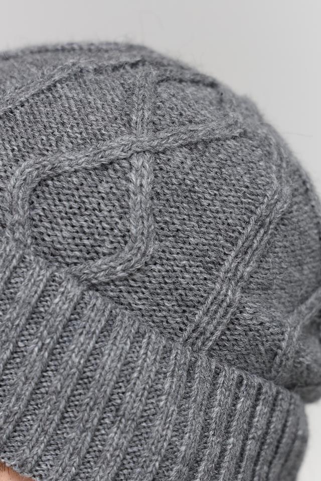 Шапка выполнена в спокойном сером цвете и украшена рельефным узором из кос, придающим ей стильный и современный вид. Плотная вязка обеспечивает надежную защиту от ветра и холода. Универсальный дизайн позволяет сочетать шапку с различной верхней одеждой и повседневным гардеробом.