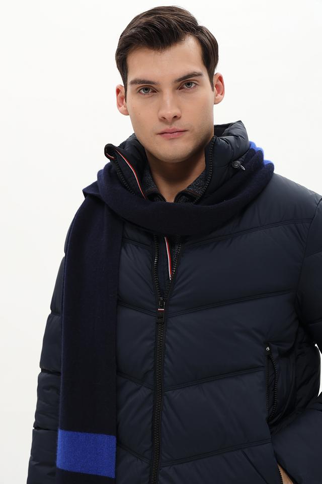 Шарф Marhatter синего цвета с контрастной полоской – стильный и практичный аксессуар для мужчин. Изготовлен из высококачественного сочетания шерсти, вискозы и полиамида, обеспечивающего тепло и комфорт. Состав: полиамид 35%, шерсть 30%, вискоза 26%, кашемир 6%, шелк 3%