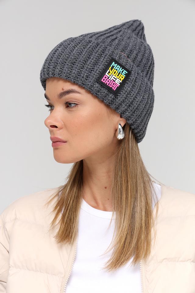 Шапка имеет классическую форму и плотно прилегает к голове, защищая от ветра и мороза. На передней части шапки расположен яркий логотип с надписью "MAKE YOUR LIFE BRIST", выполненный в красочной цветовой гамме.