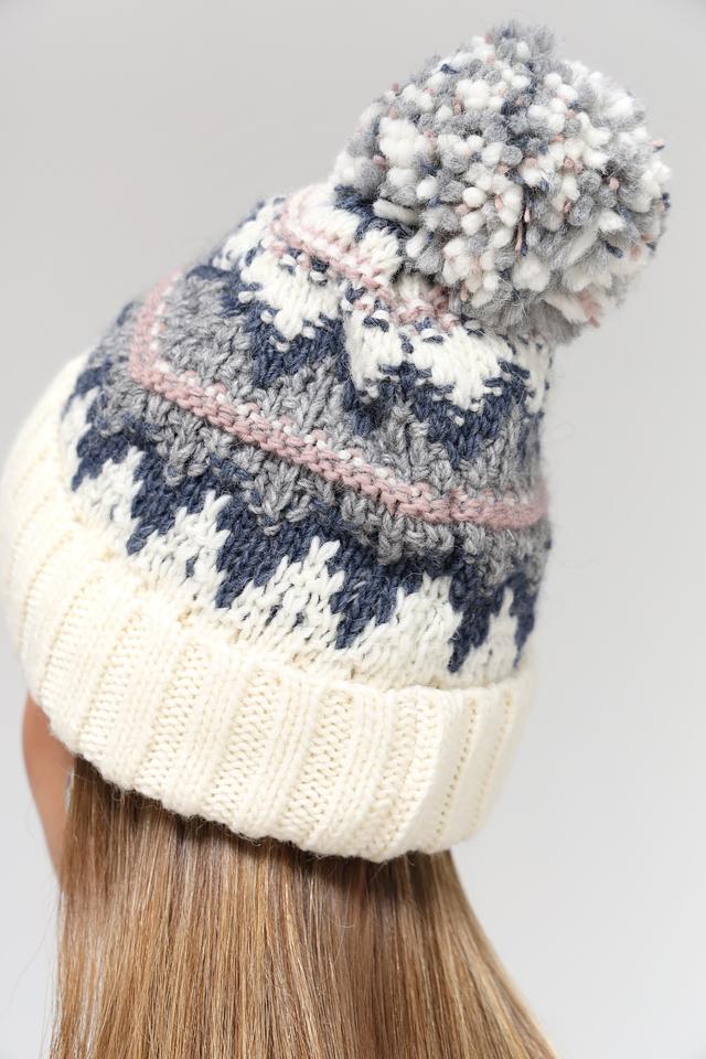 Белая шапка от Marhatter с узором и помпоном – стильный и тёплый аксессуар для зимнего сезона. Изготовлена из мягкой шерсти с добавлением акрила и альпаки для комфорта и долговечности. Состав: шерсть 50%, акрил 40%, альпака 10%