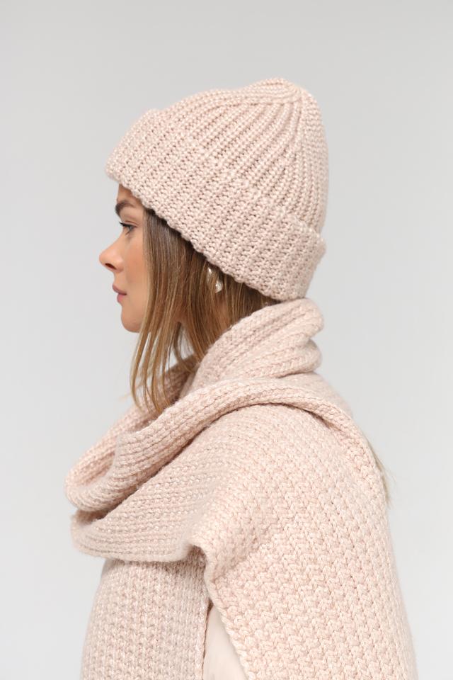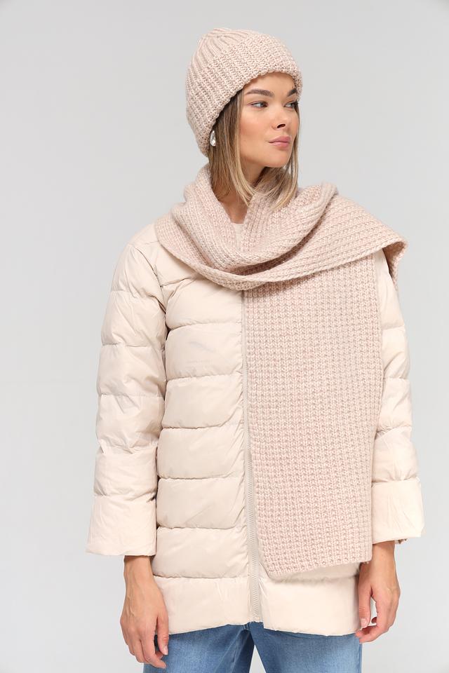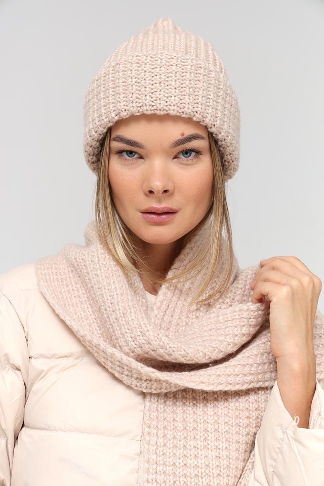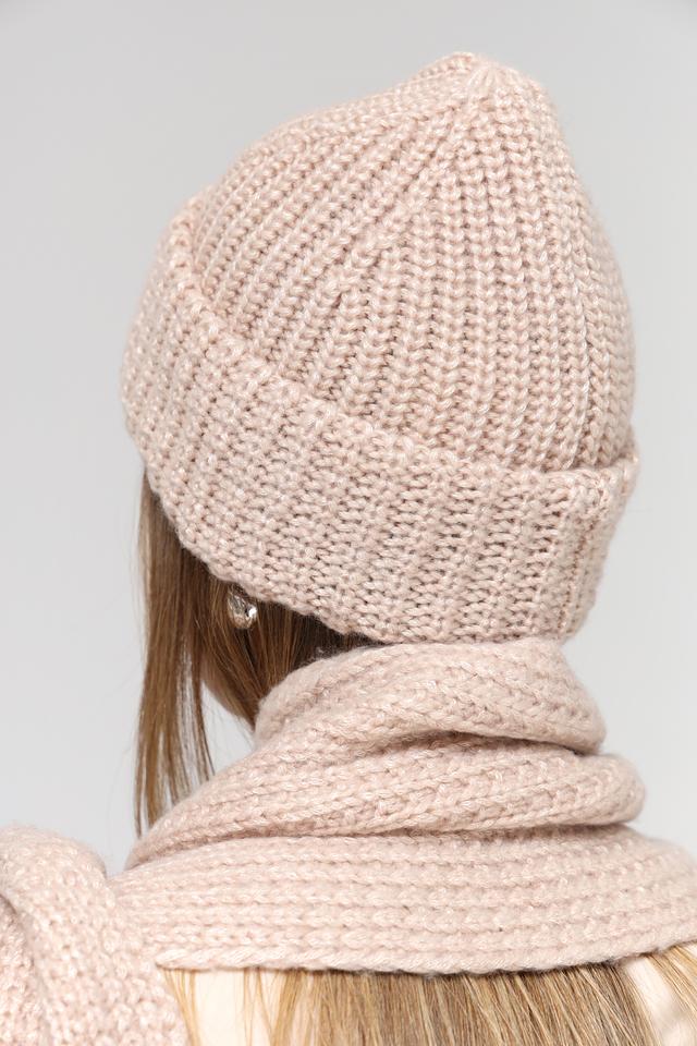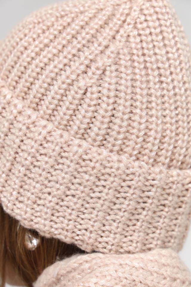 Шапка имеет классическую вязаную текстуру, которая придает ей уютный и современный вид. Бежевый цвет делает ее универсальной и легко сочетаемой с различными элементами гардероба. Она плотно прилегает к голове, обеспечивая надежную защиту от холода.