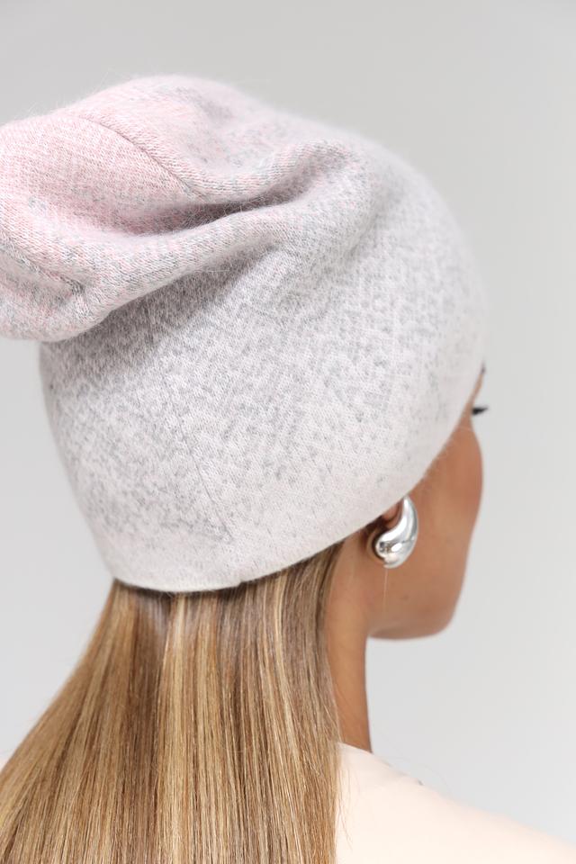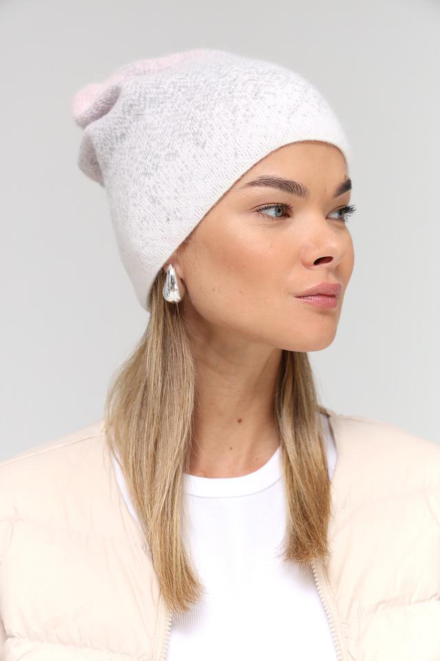 Шапка имеет свободный крой, который позволяет ей удобно сидеть на голове, не сдавливая ее. Нежный пудровый цвет легко сочетается с различными оттенками одежды, создавая стильный и женственный образ.