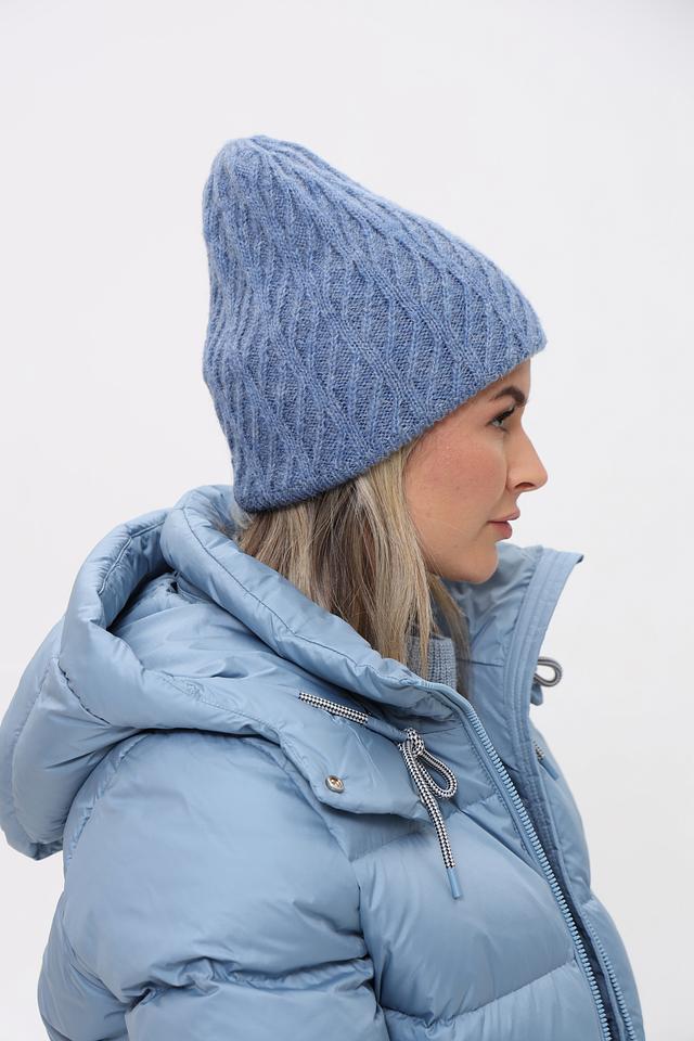 Шапка имеет классический дизайн с рельефным узором, который придает ей стильный вид. Голубой цвет делает ее универсальной и легко сочетаемой с различной одеждой.