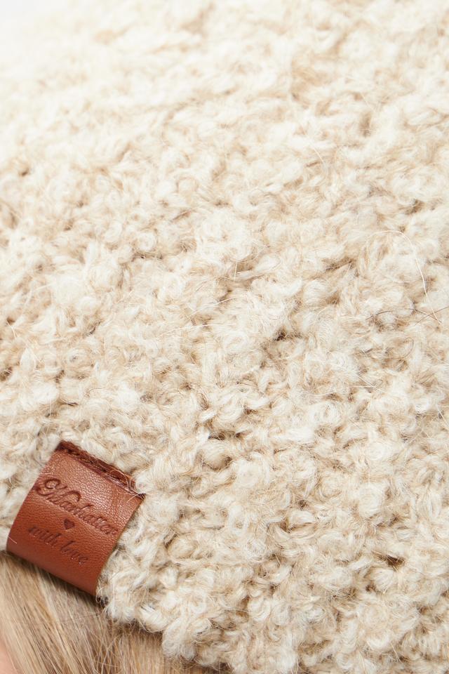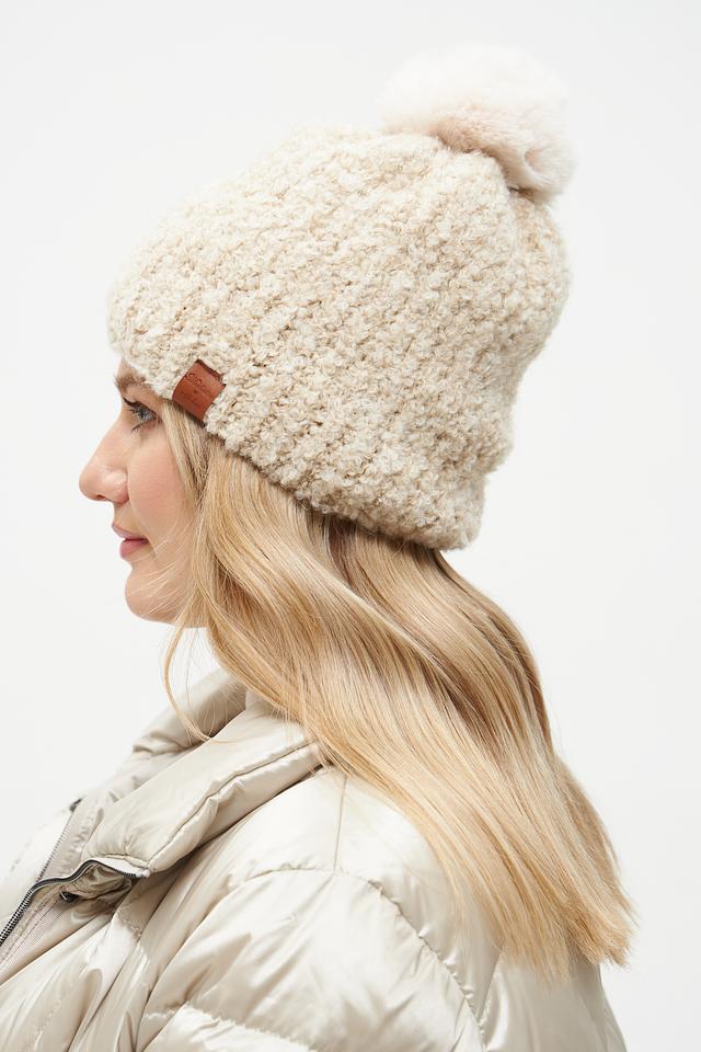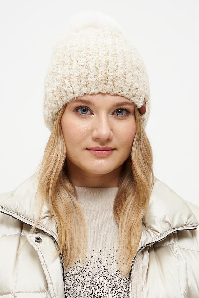 Бежевая вязаная шапка от Marhatter с помпоном – стильный и тёплый аксессуар для зимнего сезона. Изготовлена из мягкого сочетания акрила, мохера и шерсти, обеспечивающего комфорт и тепло в холодную погоду. Состав: полиакрил 50%, мохер 22%, полиамид 16%, шерсть 10%, стрейч 2%