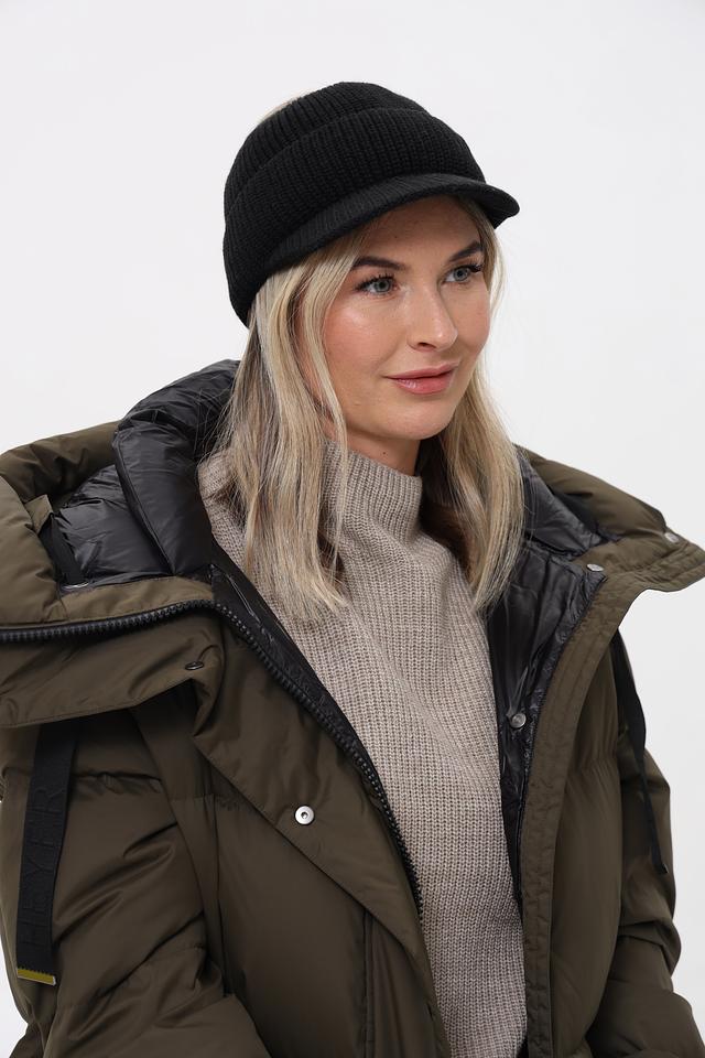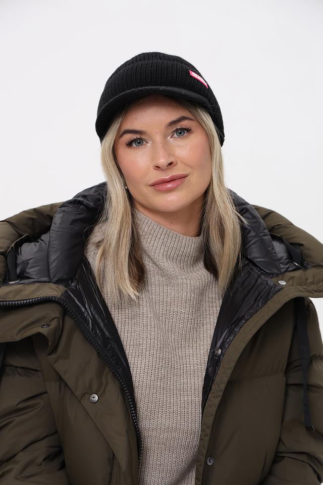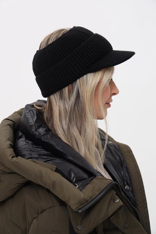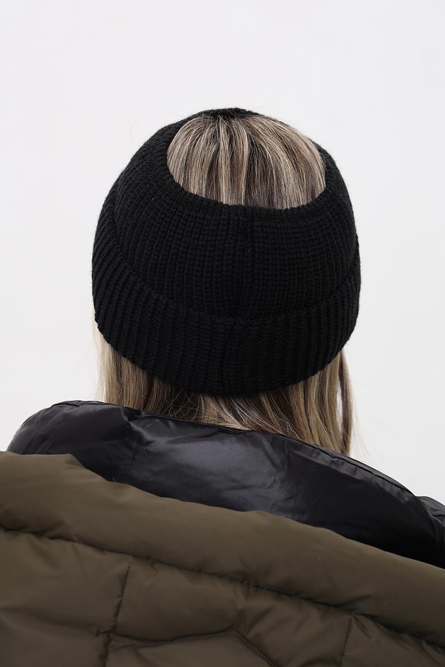 Шапка имеет классический чёрный цвет, который легко сочетается с любой одеждой. Особый акцент в дизайне – вырез сзади для удобной укладки волос, что делает её практичной для активных девушек.