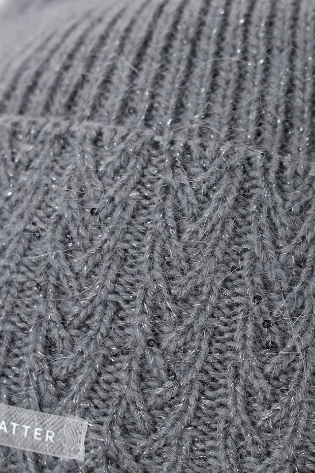 Небольшая фирменная бирка с логотипом Marhatter расположена спереди. Состав: вискоза 25%, полиамид 55%, ангора 15%, металлизированная нить 5%.