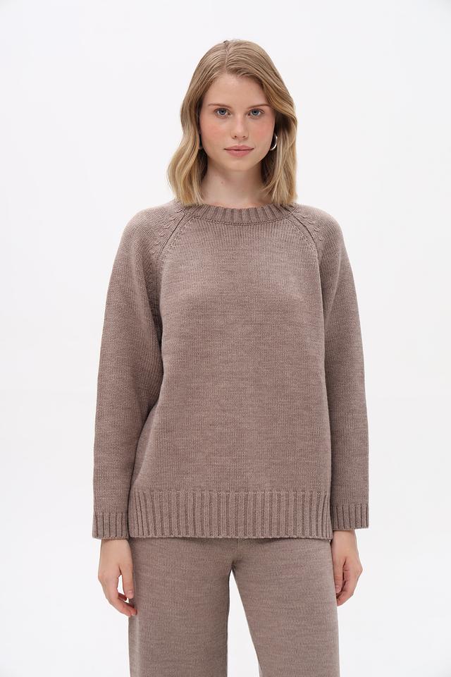Бежевый джемпер от Marhatter свободного кроя с разрезами по бокам. Изготовлен из мягкой смеси шерсти и полиакрила для комфорта и тепла. Идеально сочетается с брюками и юбками. Состав: полиакрил 70%, шерсть 30%