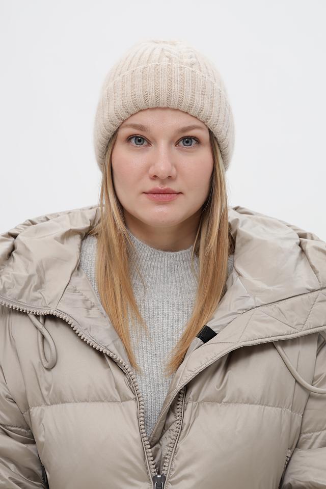 Бежевая вязаная шапка от Marhatter – это стильный и теплый аксессуар для холодного времени года. Изготовлена из сочетания полиамида, лисы и шерсти, обеспечивая комфорт и уют. Состав: полиамид 40%, лиса 40%, шерсть 20%