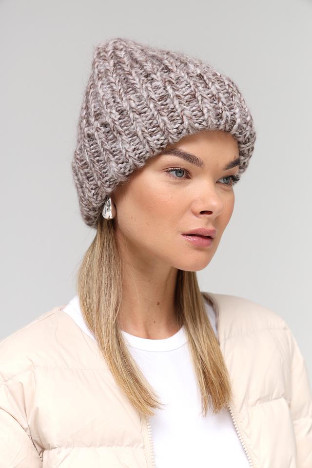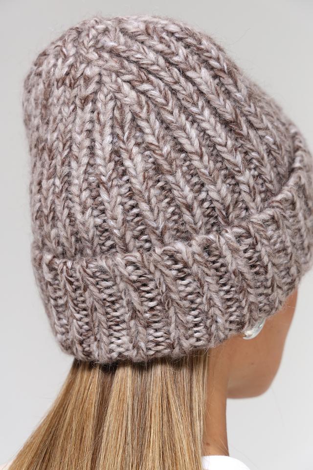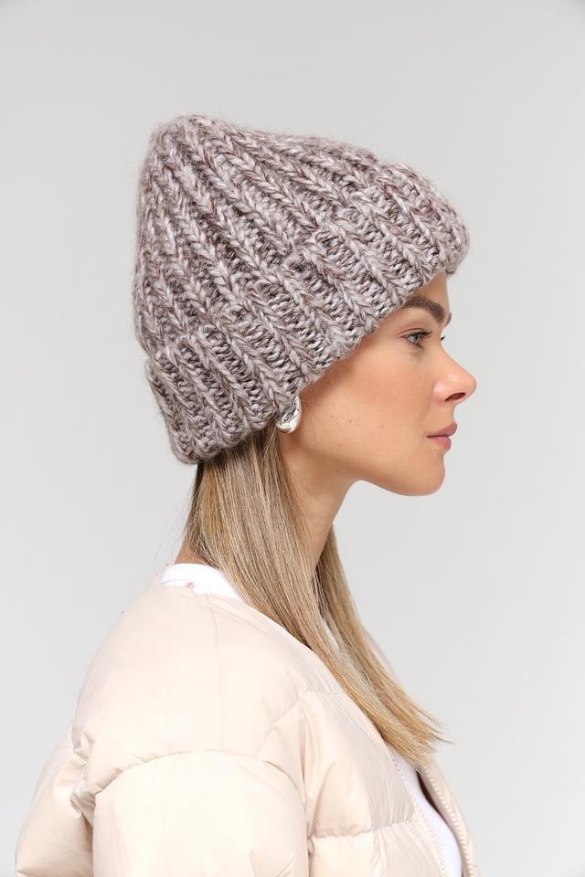 Шапка связана крупной вязкой, что придает ей объем и текстуру. Материал – сочетание 40% фибро акрила, 30% кид мохера и 30% фибро полиамида. Благодаря этому составу шапка не только теплая, но и приятная на ощупь.