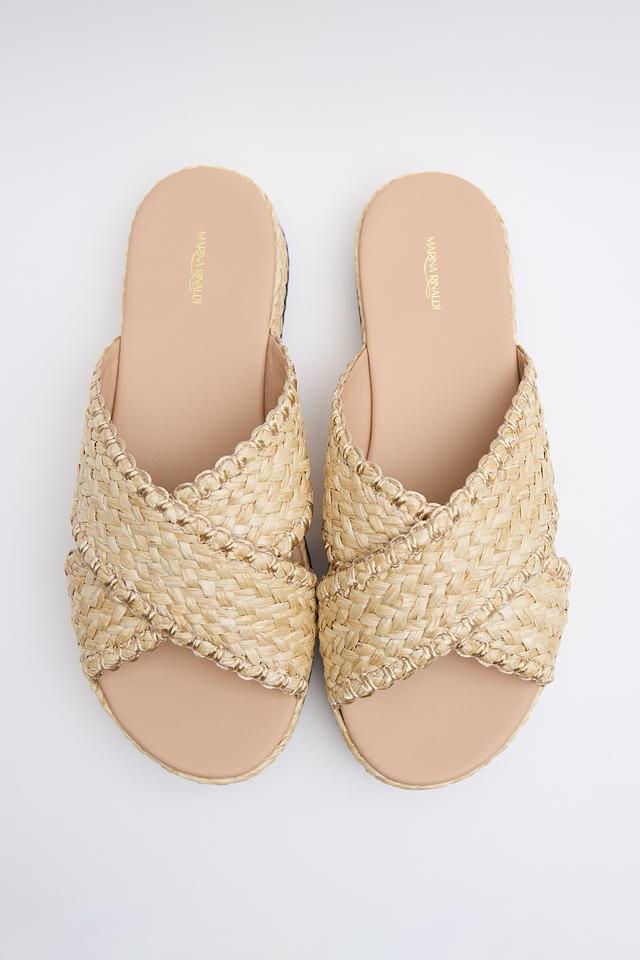 Представляем стильные шлепанцы от бренда Marina Rinaldi. Эта модель выполнена в бежевом цвете и отличается оригинальным дизайном с плетением из соломы.