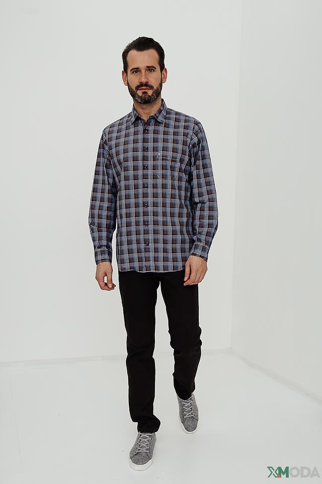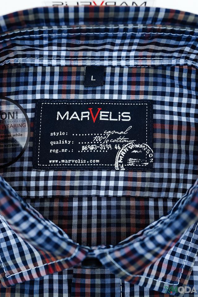 Мужская рубашка Marvelis синего цвета в классическую клетку – это стильное и универсальное решение для создания повседневного образа. Изготовлена из 100% хлопка, обеспечивающего комфорт и воздухопроницаемость. Состав: хлопок 100%