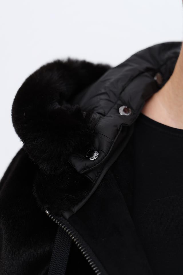 Дизайн пальто сочетает в себе фактурный искусственный мех и стеганые вставки, создавая интересный контраст. Капюшон отделан мягким искусственным мехом, защищая от ветра и холода. Застежка-молния позволяет легко регулировать степень утепления.