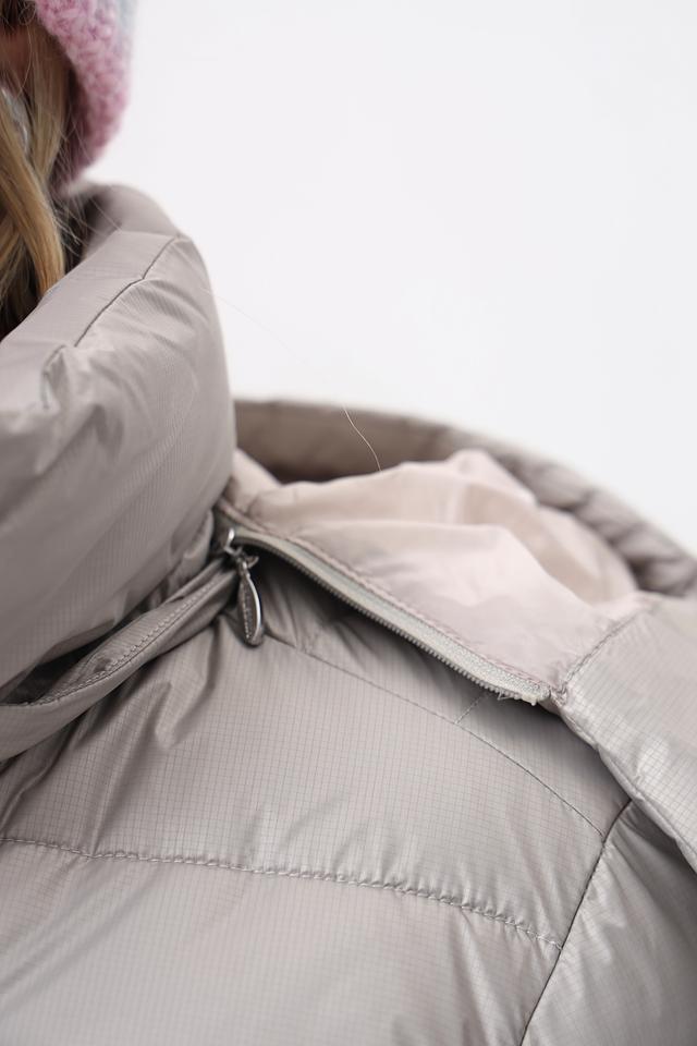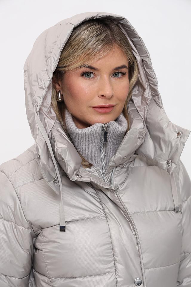 Пальто имеет удлиненный силуэт, который хорошо защищает от холода. Стеганая фактура придает модели современный и стильный вид. Капюшон обеспечивает дополнительную защиту от ветра и осадков. Застежка – молния.