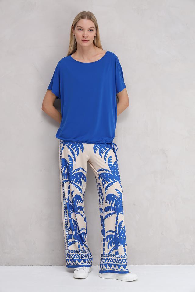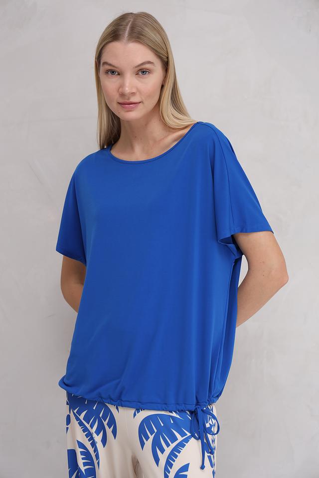 Синяя блуза Miss Lagotte свободного кроя – это стильное и комфортное решение для повседневного образа. Модель выполнена из мягкой ткани с добавлением эластана, что обеспечивает удобную посадку и свободу движений. Блуза имеет округлый вырез горловины и короткие рукава. Состав: полиэстер 92%, эластан 8%