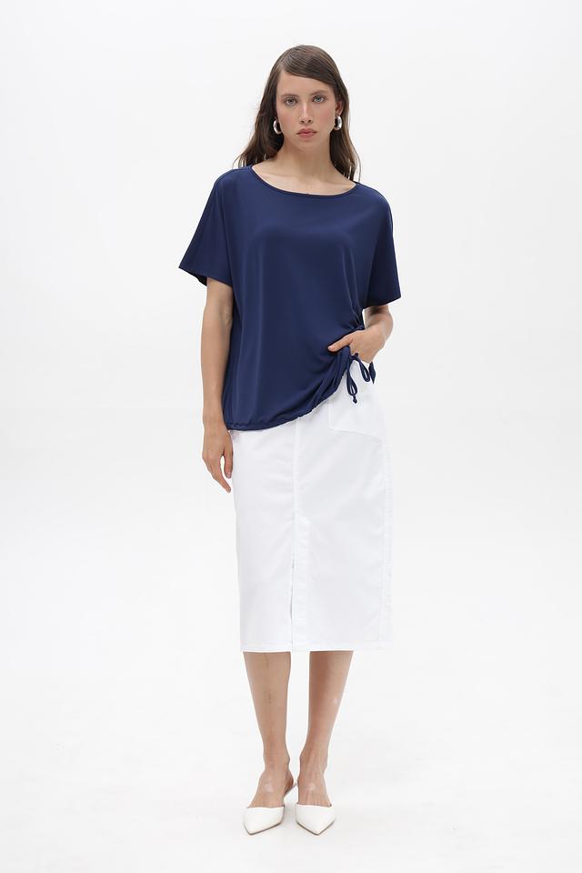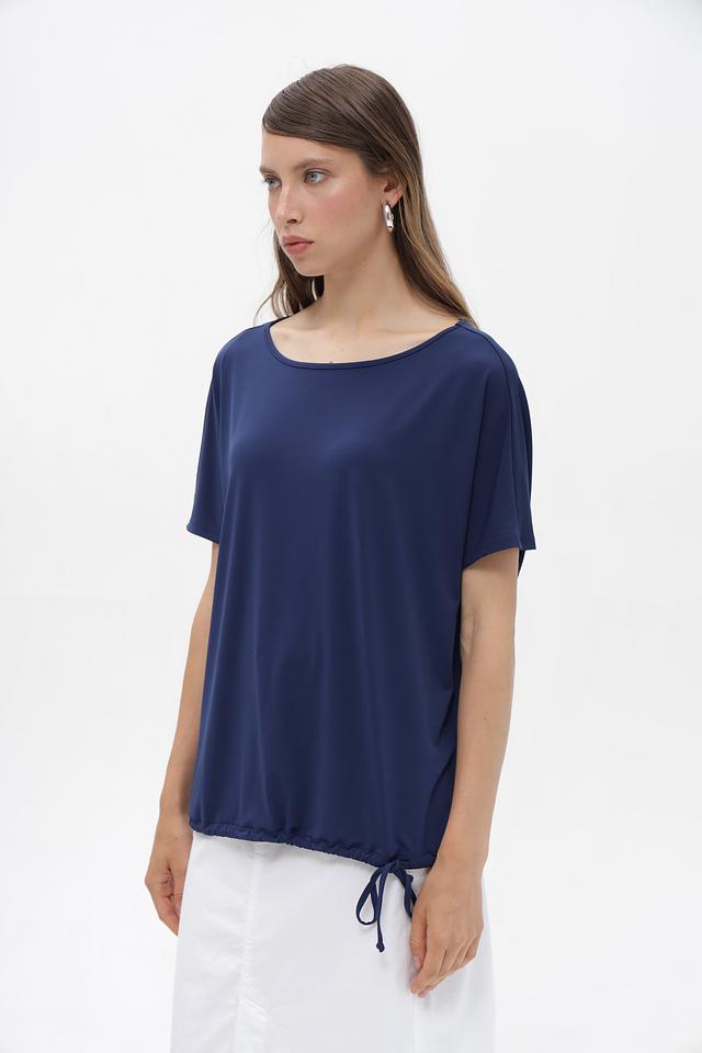 Синяя блуза Miss Lagotte – это стильная и удобная модель из полиэстера с эластаном. Блуза имеет свободный крой, короткие рукава и декоративные завязки по низу, которые позволяют регулировать силуэт. Состав: полиэстер 92%, эластан 8%