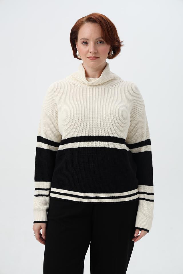 Бежевый пуловер от Miss Lagotte с контрастными полосами – стильный выбор для создания повседневных образов. Изготовлен из мягкой вискозы и хлопка, обеспечивающих комфорт при носке. Состав: вискоза 50%, хлопок 50%