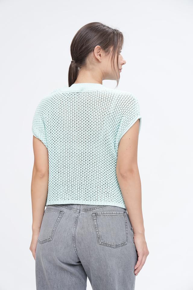 Мятный пуловер от Monari – это лёгкий и стильный выбор для тёплой погоды. Ажурная вязка придает модели воздушность, а короткий рукав делает ее удобной для повседневной носки. Изготовлен из 100% хлопка. Состав: хлопок 100%