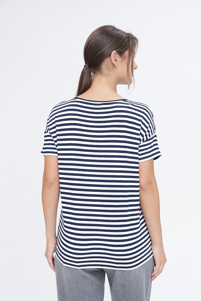 Эта стильная футболка от Monari станет отличным дополнением к вашему летнему гардеробу. Классический крой и сочетание синего и белого цветов в полоску делают ее универсальной и подходящей для различных образов.