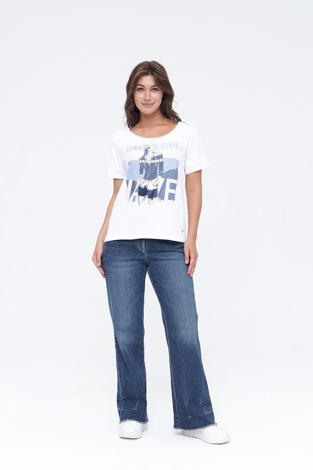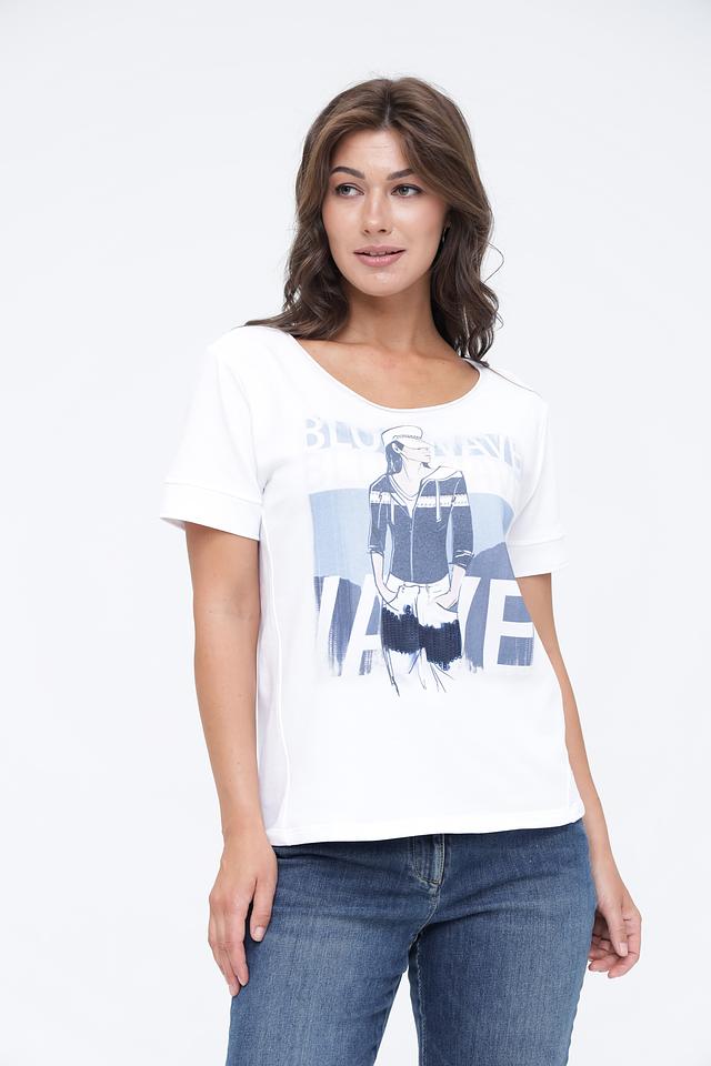 Белая футболка Monari с оригинальным принтом в морской тематике. Изготовлена из 100% хлопка, обеспечивающего комфорт и воздухопроницаемость. Стильный крой и качественный материал делают эту футболку отличным выбором для повседневного гардероба. Состав: хлопок 100%