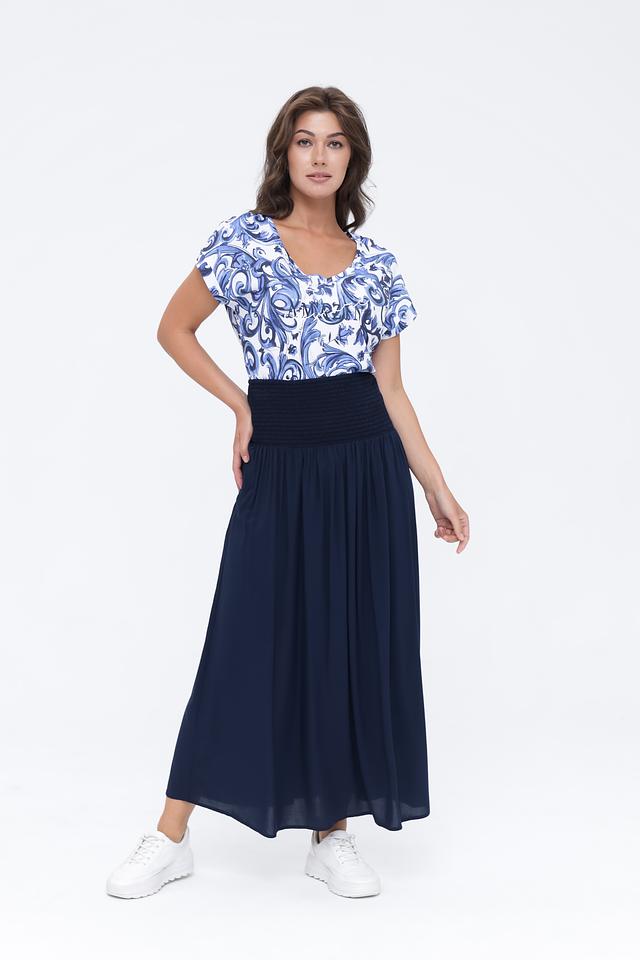 Эта блуза от Monari – идеальный выбор для создания элегантного и женственного образа. Блуза выполнена в белом цвете и украшена эффектным синим узором "пейсли", который придает ей особую изысканность.