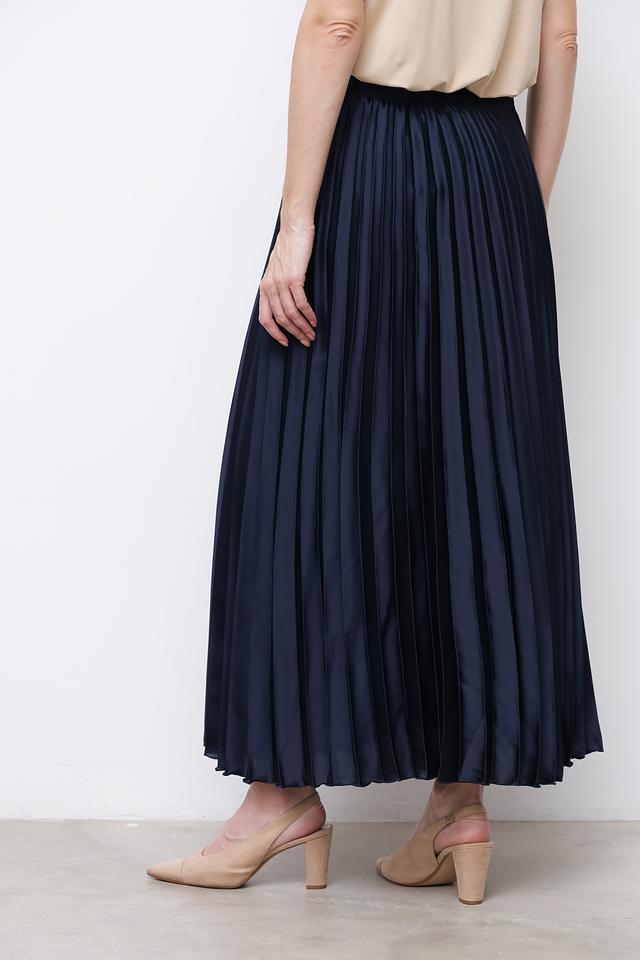 Юбка имеет длину макси и выполнена из 100% полиэстера, что обеспечивает ей лёгкость, приятные тактильные ощущения и простоту в уходе. Плиссировка придает юбке динамичный и женственный вид, а эластичный пояс обеспечивает комфортную посадку по фигуре.