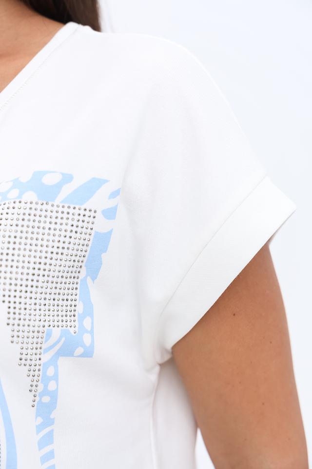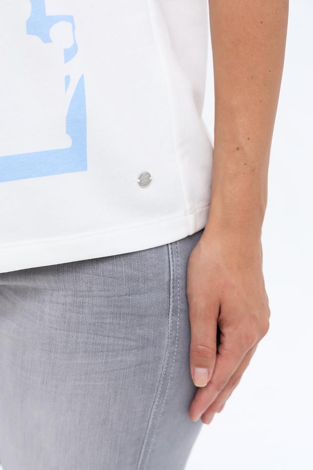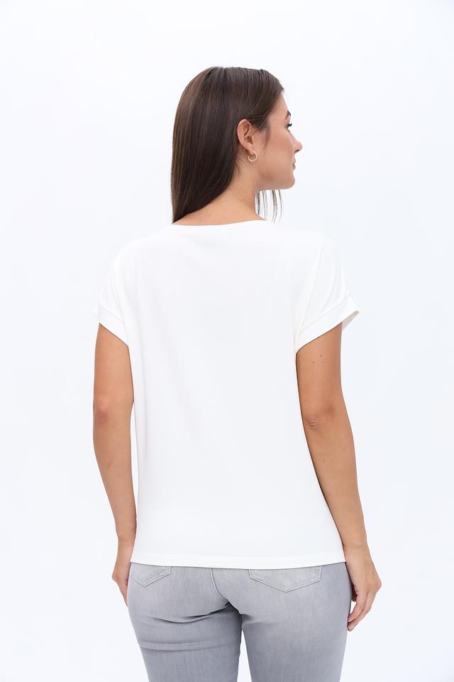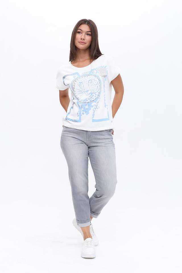 Эта футболка от Monari – отличный выбор для создания непринужденного и модного образа. Преобладающий белый цвет делает ее универсальной основой для различных комбинаций.