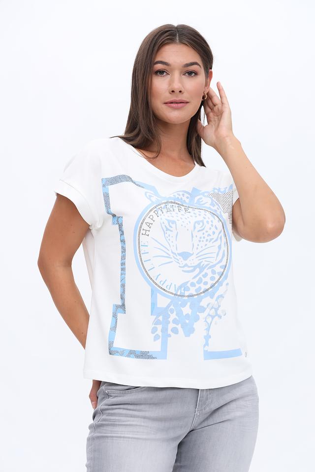 Белая футболка Monari с ярким принтом тигра и надписью "Happy Life" станет стильным дополнением вашего гардероба. Модель выполнена из мягкого хлопка с добавлением полиэстера, обеспечивающего комфорт и износостойкость. Состав: хлопок 70%, полиэстер 30%