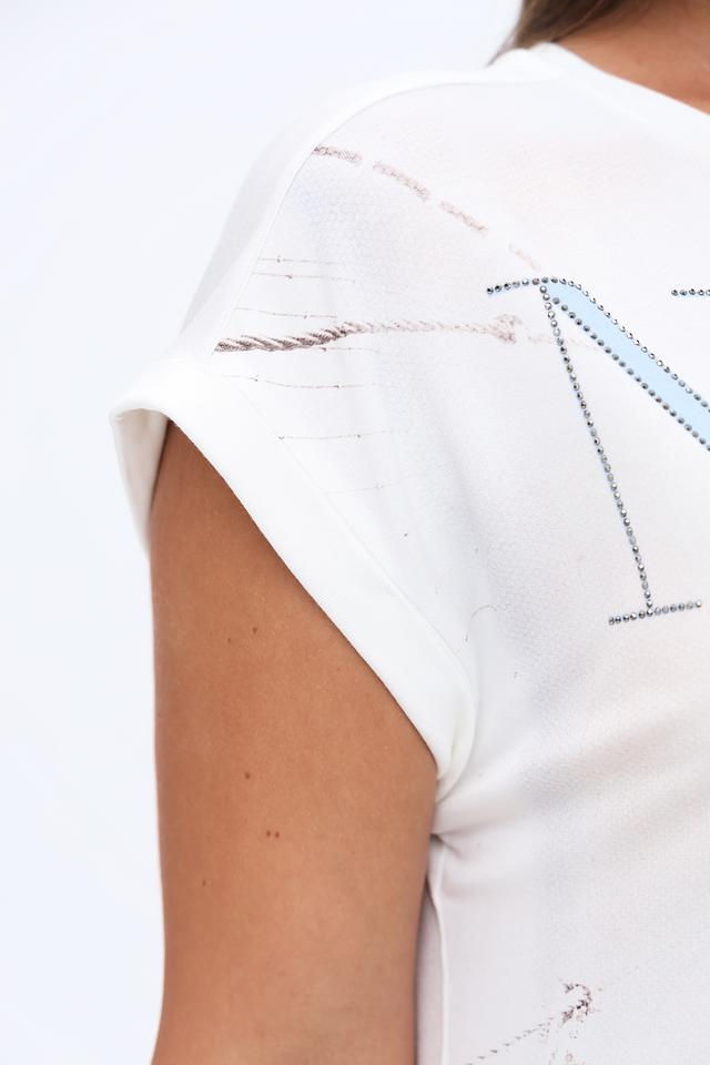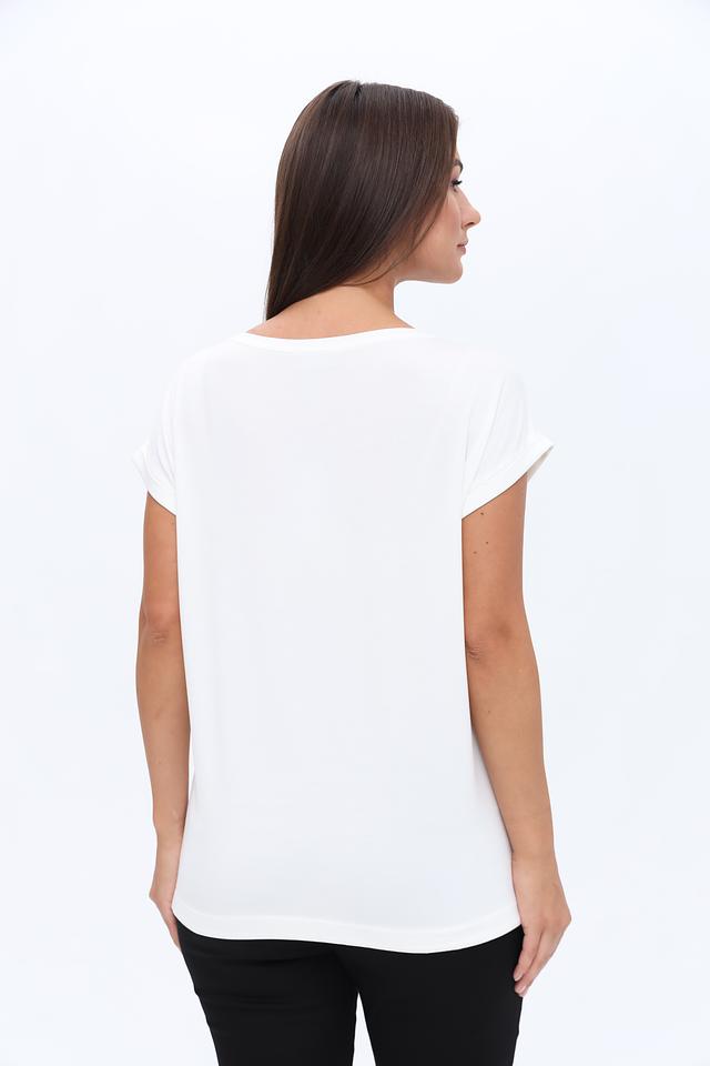 Модель имеет свободный крой, который не сковывает движений и обеспечивает комфортную посадку по фигуре. Короткие рукава-крылышки добавляют легкости и воздушности. Футболка изготовлена из высококачественного трикотажа, в составе которого модал, вискоза и эластан, что обеспечивает мягкость, приятные тактильные ощущения и хорошую износостойкость.