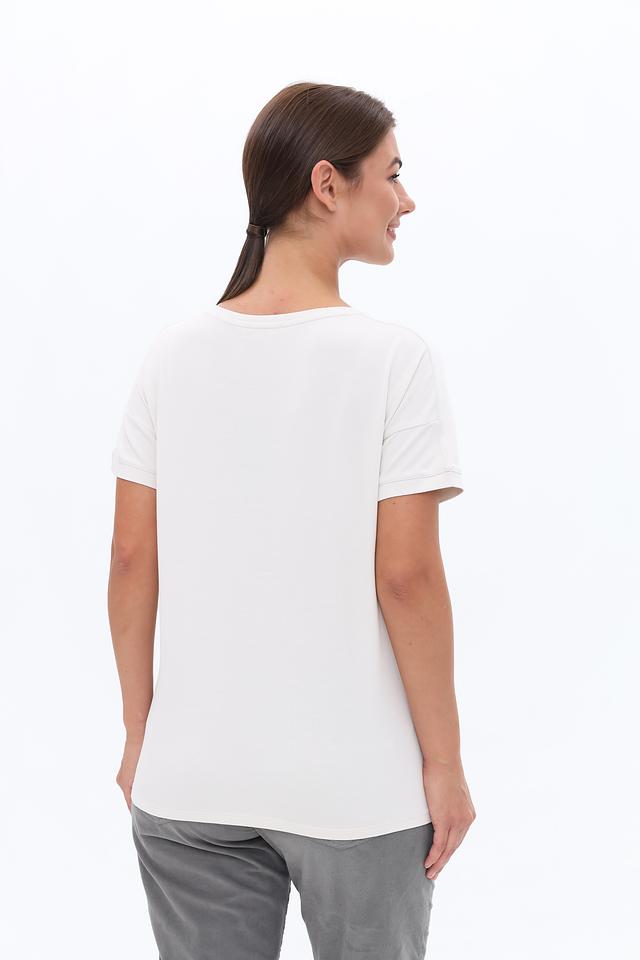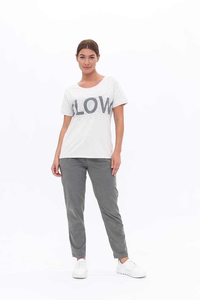 Белая футболка Monari с оригинальной надписью "Glow" и декоративной отделкой стразами. Изготовлена из мягкого и приятного к телу сочетания хлопка и модала, обеспечивая комфорт в носке. Состав: хлопок 50%, модал 50%