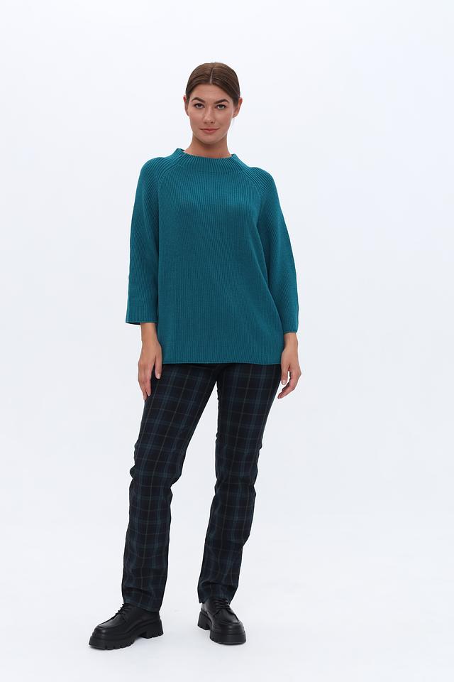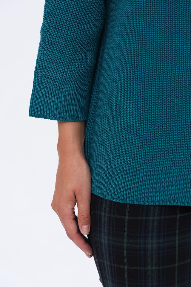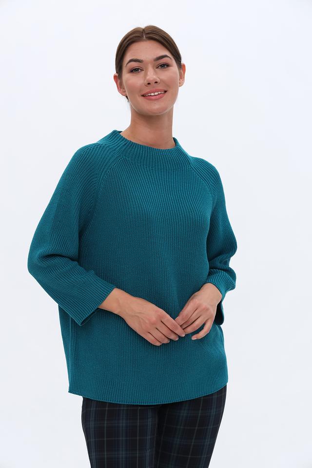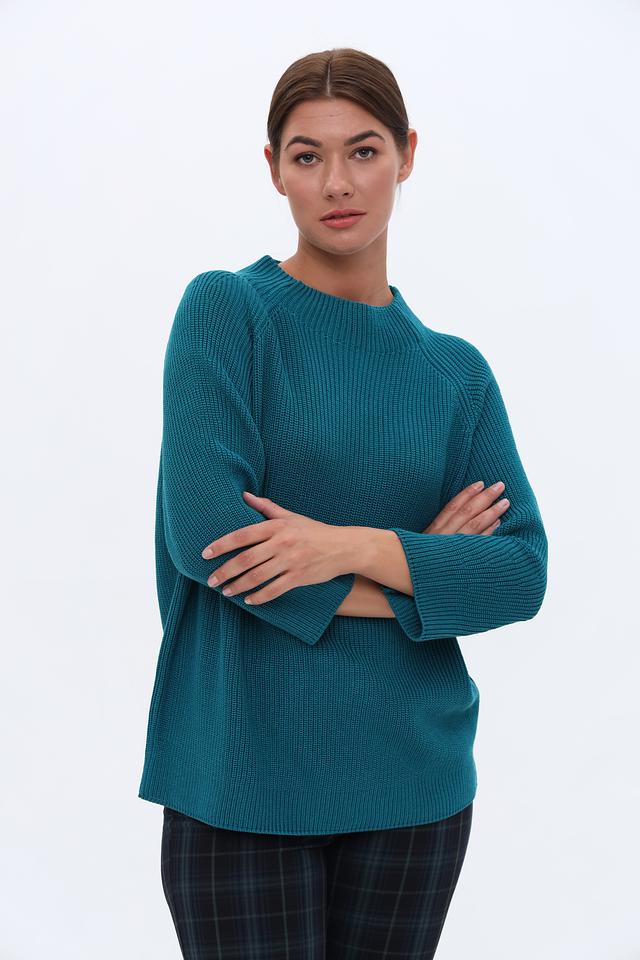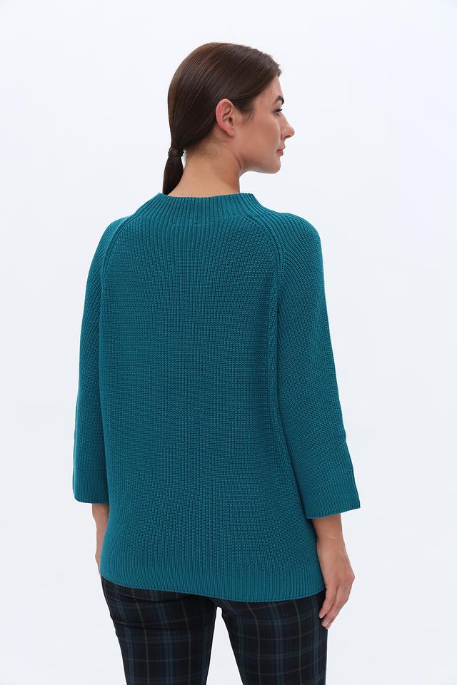 Бирюзовый пуловер Monari с рукавом 3/4 и округлым вырезом горловины. Изготовлен из мягкого трикотажа с текстурной вязкой, обеспечивающей комфорт и стильный вид. Идеально сочетается с брюками и юбками. Состав: хлопок 50%, полиакрил 50%