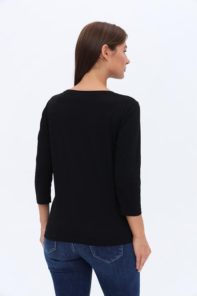 Чёрный лонгслив Monari с оригинальным принтом добавит изюминку в ваш повседневный образ. Изготовлен из мягкого и приятного к телу сочетания хлопка и модала, обеспечивая комфорт в носке. Состав: хлопок 50%, модал 50%