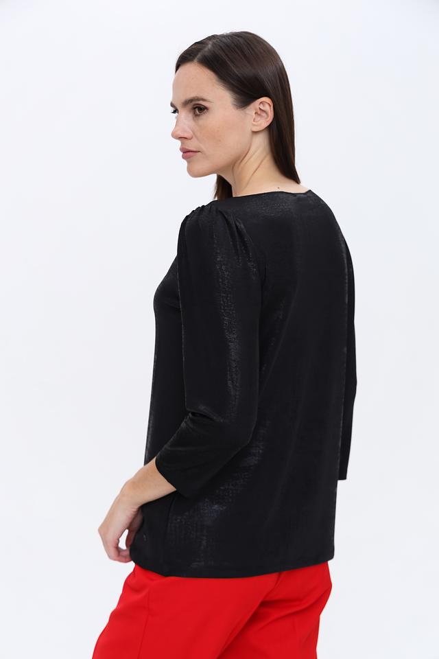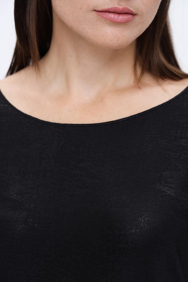 Чёрный лонгслив от Monari с деликатной текстурой станет отличным дополнением к вашему гардеробу. Изготовлен из мягкого и приятного к телу материала с добавлением эластана для комфортной посадки. Состав: полиэстер 95%, эластан 5%