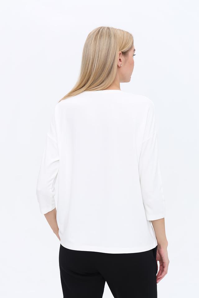 Лонгслив имеет удобный крой и длину рукава 3/4, что делает его универсальным для создания различных образов. Он прекрасно сочетается с джинсами, брюками или юбками, позволяя создавать как повседневные, так и более нарядные комплекты.
