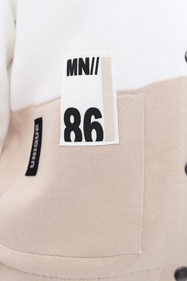 Жакет выполнен в бежево-белой цветовой гамме и украшен ярким принтом с изображением девушки. Застежка на кнопки позволяет легко регулировать силуэт. Капюшон добавляет практичности и непринужденности образу.