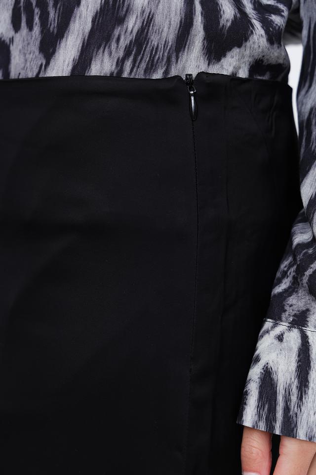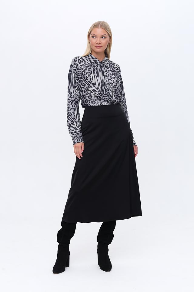 Юбка имеет миди-длину и прямой крой, который подчеркивает фигуру, не сковывая движений. Ткань – мягкая и приятная к телу вискоза с небольшим добавлением эластана, обеспечивающим комфорт при носке и хорошую посадку.