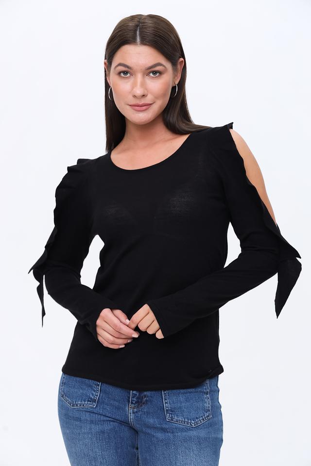 Чёрный пуловер Monari с оригинальным дизайном и открытыми плечами станет стильным дополнением вашего гардероба. Модель выполнена из мягкого трикотажа с добавлением шерсти, что обеспечивает комфорт и тепло. Состав: шерсть 50%, полиакрил 50%