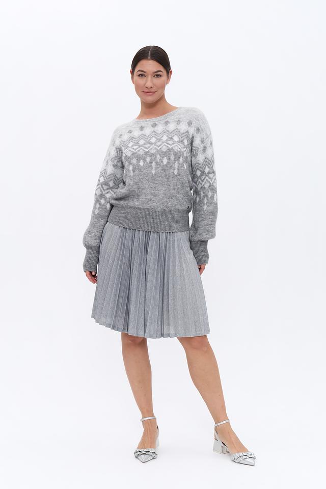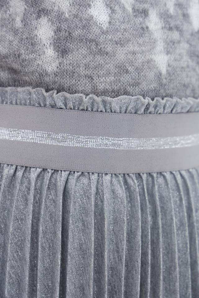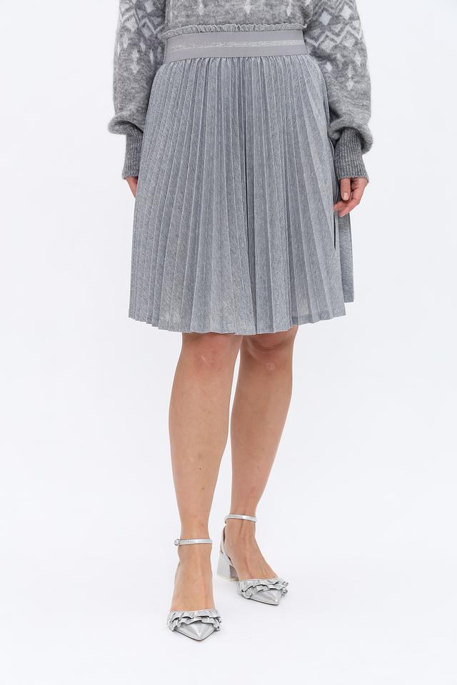 Стильная юбка Monari серого цвета с плиссированной текстурой и эластичным поясом. Модель длиной миди идеально подходит для создания элегантных и комфортных образов. Сочетает в себе изящество и практичность. Состав: полиэстер 80%, метализ.нить 20%