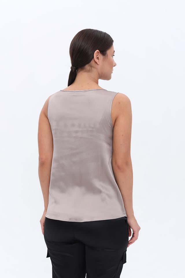Топ имеет прямой крой и тонкие бретели, что придает ему легкость и изящество. Бежевый цвет делает его универсальным и подходящим для создания различных стилей.