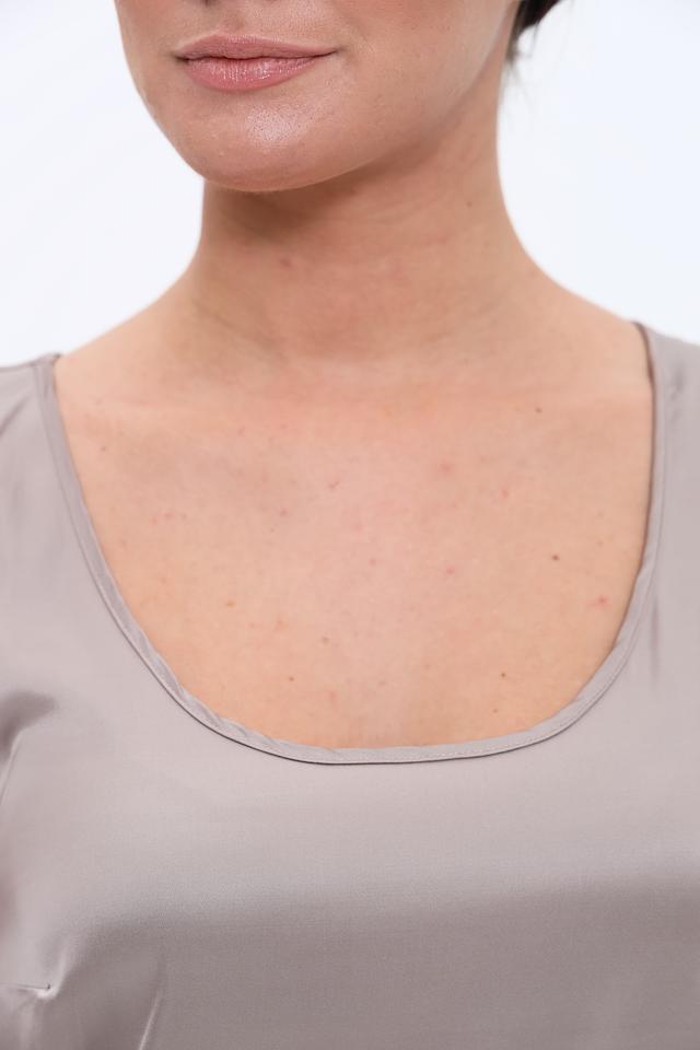 Состав топа: 96% вискоза, 4% эластан. Этот материал обеспечивает хорошую воздухопроницаемость и приятен в носке. Топ легко стирается и быстро сохнет.