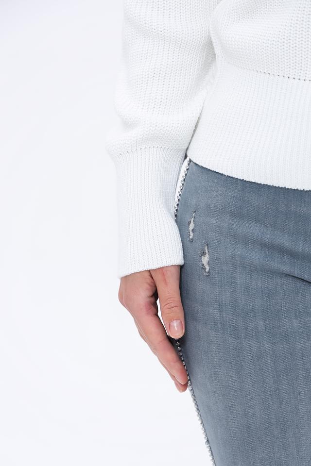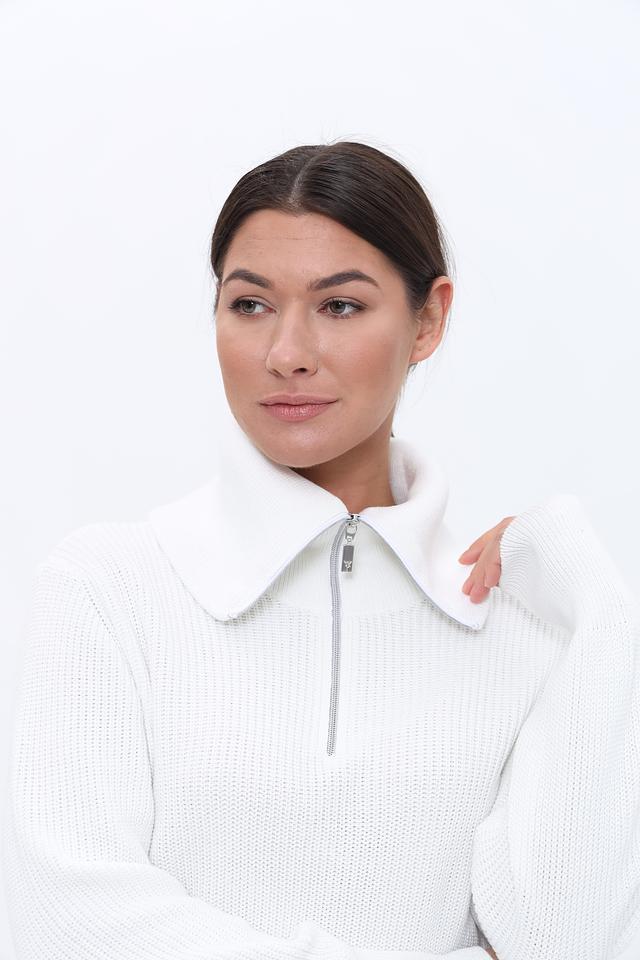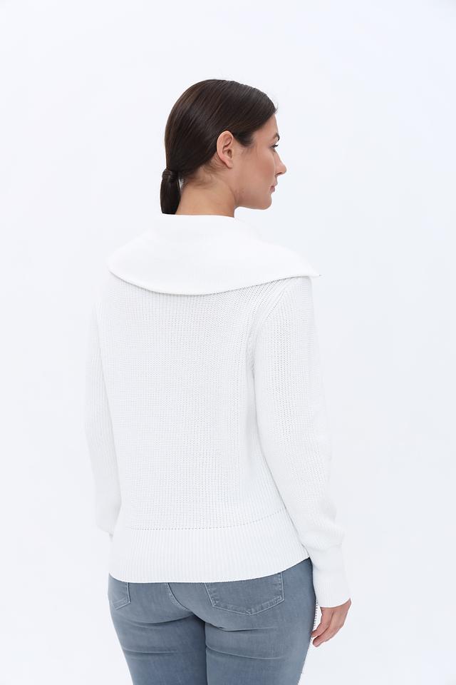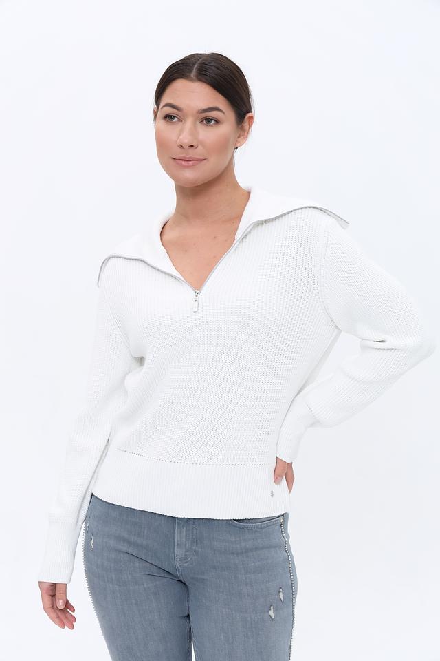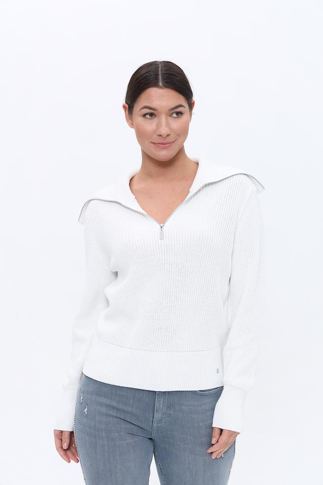 Белый пуловер Monari с воротником-стойкой и молнией – стильное и комфортное решение для создания повседневных образов. Изготовлен из мягкого трикотажа с фактурной вязкой, что придает ему особый шарм. Состав: хлопок 50%, полиакрил 50%