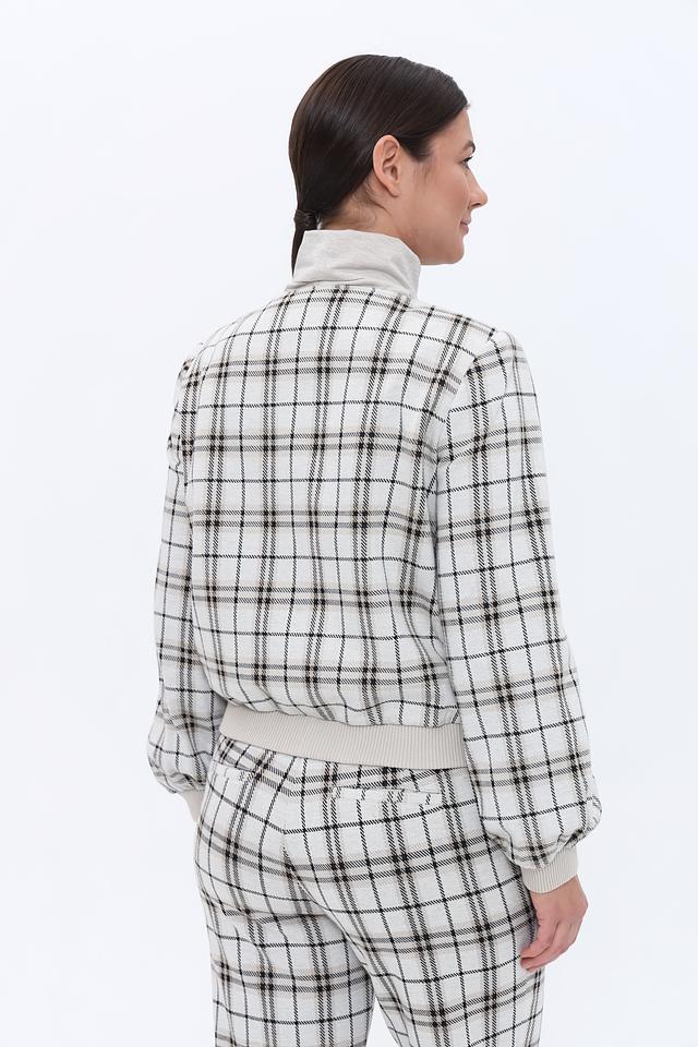 Этот жакет от Monari станет отличным дополнением к вашему гардеробу. Он выполнен в белой расцветке с выразительным клетчатым принтом, который придает образу динамичность и свежесть.