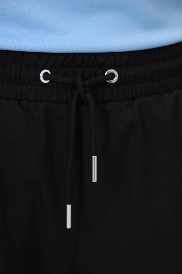 Модель оснащена двумя функциональными карманами с клапанами на молнии, что добавляет практичности и стиля. Эластичный пояс с кулиской позволяет регулировать посадку по фигуре. Низ брюк дополнен манжетами, что придает им более современный и расслабленный вид.