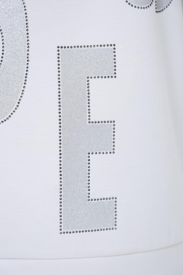 Передняя часть пуловера украшена надписью "SHINE" с использованием серебристых блесток, что придает изделию особый шарм и привлекательность. Пуловер имеет длинные рукава и эластичные манжеты, обеспечивающие комфорт при носке.