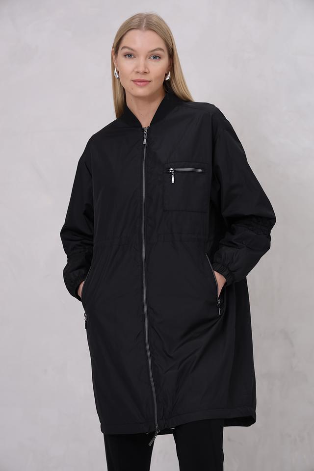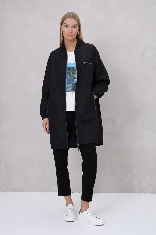Чёрный плащ Monari оверсайз кроя – стильное и практичное решение для переменчивой погоды. Модель выполнена из 100% полиамида, имеет удобный капюшон и застёжку на молнию. Состав: полиамид 100%