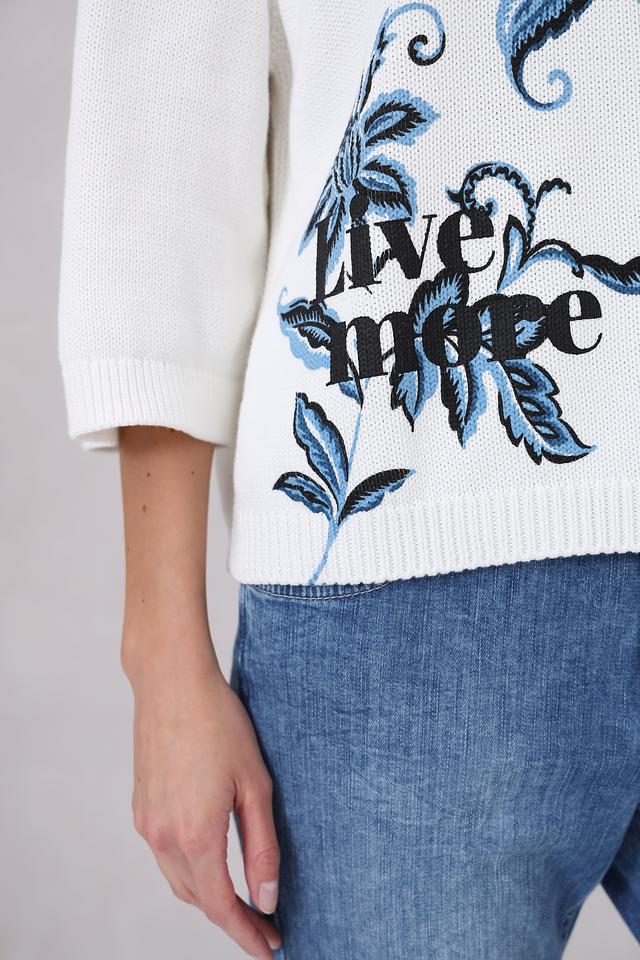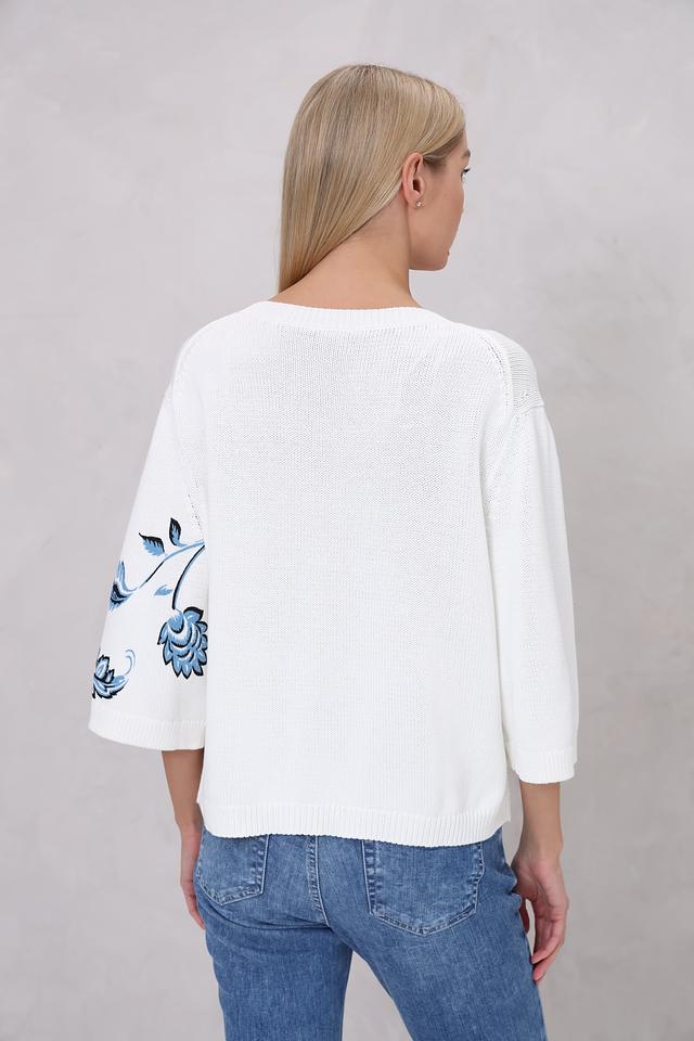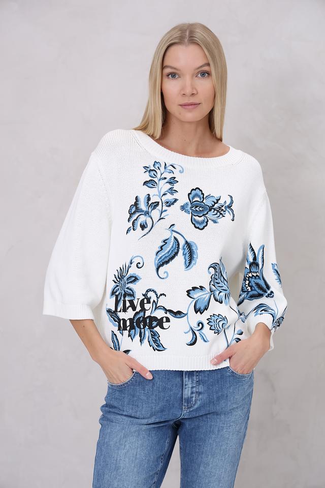 Белый пуловер Monari с ярким цветочным принтом станет стильным дополнением вашего гардероба. Модель выполнена из мягкого хлопка и имеет удобный крой с рукавами 3/4. Состав: хлопок 100%